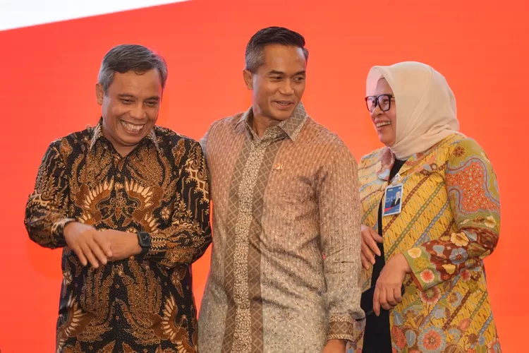 JAKARTA, AYOBOGOR.COM - Direktur Utama PT Bank Tabungan Negara (Persero) Tbk, Nixon LP Napitupulu (kiri), bersama Direktur Commercial Banking BTN, Hermita (kanan), berbincang dengan Menteri Perumahan dan Kawasan Permukiman, Maruarar Sirait (kedua kiri), serta Ketua Umum Kamar Dagang Indonesia, Anindya N. Bakrie (kedua kanan), dalam Sosialisasi KUR Perumahan di Wisma Danantara Indonesia, Jakarta, Senin (8/9).